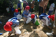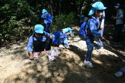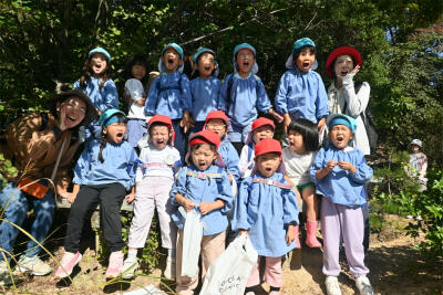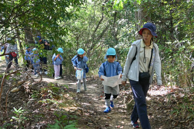 子どもたちは、赤く色づき始めた葉っぱやドングリを見つけて、秋を感じながら登山を楽しみました。木には黄緑のドングリがまだいっぱいくっついていたので、次回11月に登る頃には、また一段と秋の深まりを感じながら登ることができるでしょう。今からとても楽しみです。子どもたちと一緒に登ってくださった、地域の方、ありがとうございました。