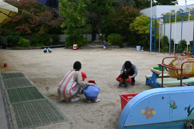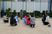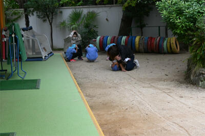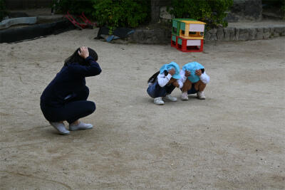今日は、Jアラートの緊急地震速報訓練が行われました。子どもたちは、外で好きな遊びをしている時間帯でしたが、それぞれの場所で、近くにいる先生の指示を聞いて、頭を隠すなど身を守り、安全なところに避難しました。