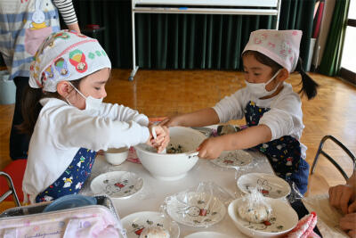 今日は、兵庫県栄養医学協会の方にお越しいただき、おむすび教室をしました。はじめに食の大切なお話を教えていただき、さっそく、おむすびを作り始めました。
