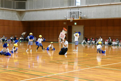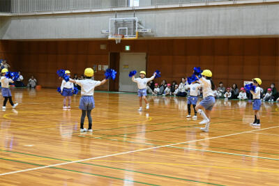 まず最初は、各園の紹介です。すみれ組の子どもたちは、広い体育館で、元気いっぱいポンポンダンスを披露しました。