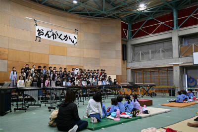 子どもたちは、お兄さん、お姉さんの元気できれいな歌声や合奏に聴き入っていました。