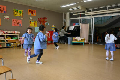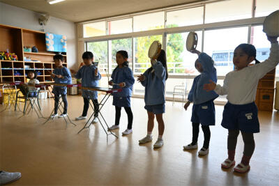 西山幼稚園でも12月6日の音楽参観日に向けて、歌や曲、リズムに親しみ、楽しみながら楽器遊びを進めていきます。
