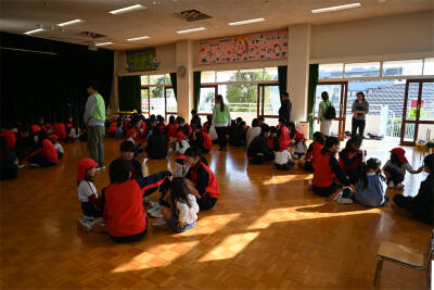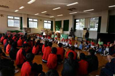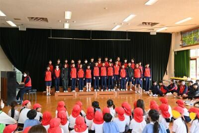 中学生が、合唱コンクールで歌った歌を披露してくれました。子どもたちは、お兄さん、お姉さんが一生懸命歌う姿、素敵な歌声を真剣に聴き入っていました。