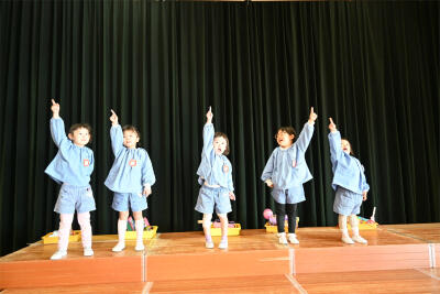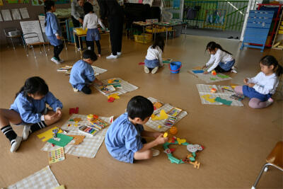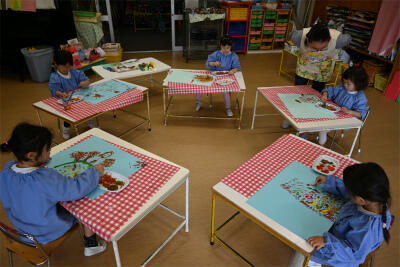 年少いちご組の保育室から‥‥「♪しろ しろ しろやま~」と城山の歌を口ずさむ楽しい歌声が聞こえてきました。