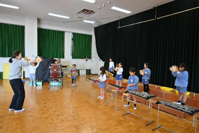 友達や先生と一緒に「こんなふうにしてみよう!」とリズムを考えたり、気持ちを合わせたり、合奏することを楽しんでいます。
