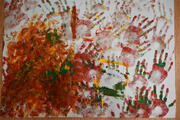 「お山がおしゃれしてるの」「どんぐりさんも転がって遊んでる!」とイメージを膨らませながら、伸び伸びお芋スタンプで描いていました。
