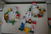 木工から始めたリース作り。今日でこんなにかわいいリースが完成しました。音楽参観日には、遊戯室に飾る予定です。