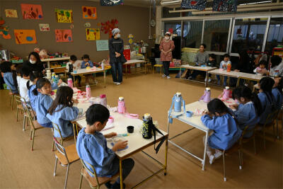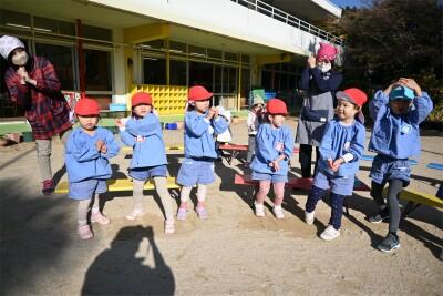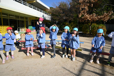 そして、いちご組さんもすみれ組さんも、さんさんひろばのお友達も来てくれていたお父さんもみんなでつきました。