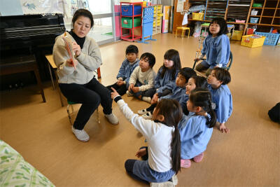 お話遊び 投稿: ルーム管理者 (18:45) 今日は、2月の生活発表会の劇遊びに向けて、各クラス、絵本を読みました。子どもたちは、どんなお話かドキドキワクワクお話の世界を楽しんでいました。 さっそく、いちご組では、登場人物になって遊びが始まりました。 すみれ組では、この真剣な表情! お話の世界で感じたことを言葉や体で表現し、友達や先生と一緒に遊びを創っていきます。どんな遊びになっていくのか、今からとても楽しみです。