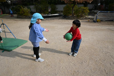 小さいお友だちと一緒に! 投稿: ルーム管理者 (15:17) 今日は、新入園児保護者会がありました。来年度入園予定のお子さんが来てくれて、園庭で一緒に遊びました。いちご組もすみれ組も、優しく声をかけたり、一緒に遊んだり、お姉さん、お兄さんぶり発揮です。 新入園児歓迎会は、2月18日にあります。また来てくださいね。楽しみにしています。