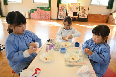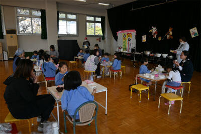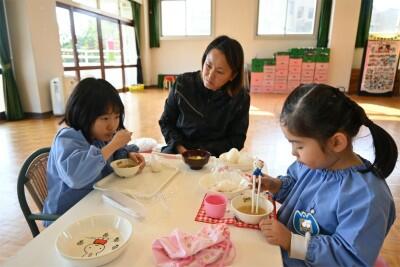 自分で握ったおむすびや講師の先生が作ってくださった豚汁の味は、格別に美味しかったようです。おにぎり、豚汁何回もおかわりした子もいました。たくさん食べて、心も体もぽかぽか温かくなりました。