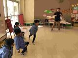 「もっと遊びたーい!」と言う声がたくさん聞かれ、子ども達の心と体が弾んだひと時でした。講師の先生、ご指導をありがとうございました。来週からの遊びにもつなげていきたいと思います。