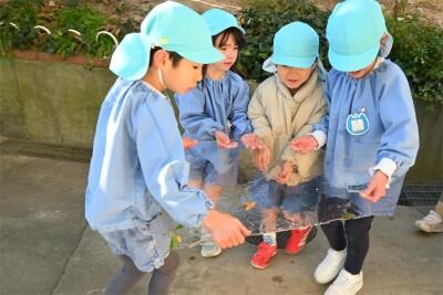 「冷たーい!」「うさぎさんの氷見つけたよ!」(葉っぱが耳)と、次々氷を大事そうに集めていました。