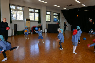 午後から、年長すみれ組は、山手小学校の1年生の体育に参加させてもらいました。