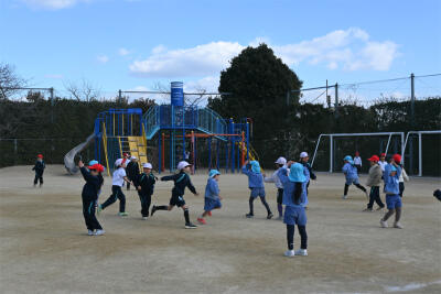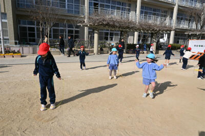 広い校庭で、氷鬼をしたり、縄跳びを一緒にしました。