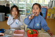 「プチっとしてた!」と口の中で白米とは違う感触も楽しみました。自分たちで育てたお米を、みんなで分け合って食べて、一粒一粒のお米のありがたさを感じることができました。