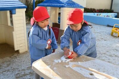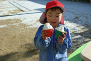 そうっと、そうっと大切に集めて、「かき氷!」「雪だるま!」と雪遊びを楽しみました。
