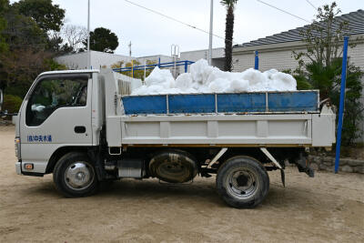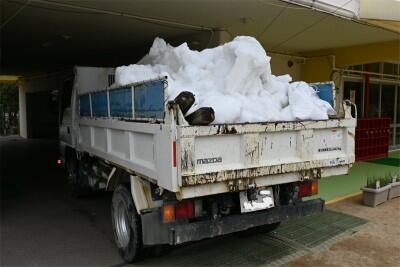 2トントラック2台分の雪です。兵庫県の新温泉町から運ばれてきた雪だそうです。