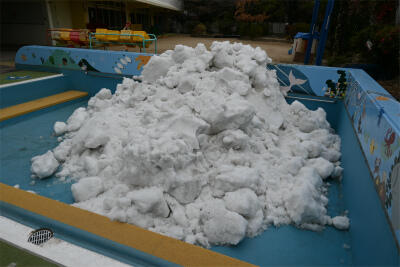 そして、会終了後、雪まつりの雪が、幼稚園に運ばれてきました。