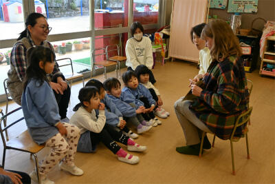 今年度最後の「英語で遊ぼう」がありました。講師の先生にお越しいただき、歌や絵本、ダンス、カルタ遊びに交えて、楽しく英語を教えていただきました。
