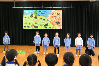 観ていたぞう組の子どもたちから、「フェルジナンドが連れて行かれた時、泣きそうになった」「闘牛士が戦うところがかっこよかった」「最後、お母さんに会えて感動したよ」とたくさん褒めてもらい、すみれ組の子どもたちは、とても嬉しそうでした。