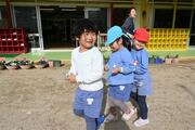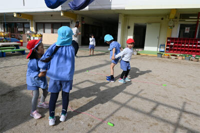 仲良し電車で、園庭中を元気いっぱい、走り回ります。