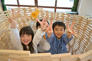 参加してくださった保護者の方とも力を合わせて、ひのき棒でこんなに楽しいタワーができました!