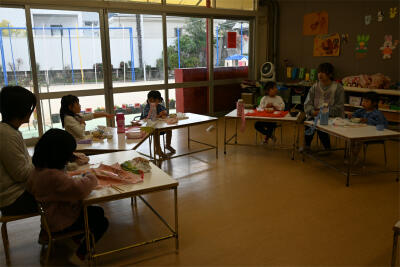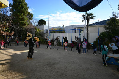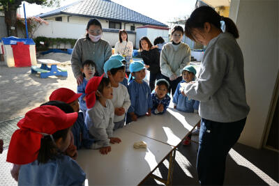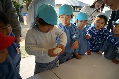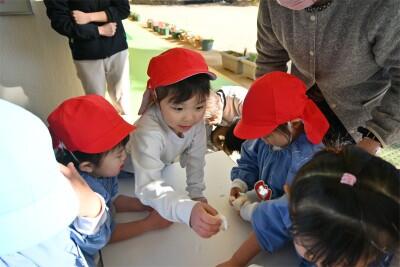 そして、みんなで鏡開きをしました。今年1年が元気に過ごせますようにと願い、子どもたちと先生も鏡餅を開いていきました。