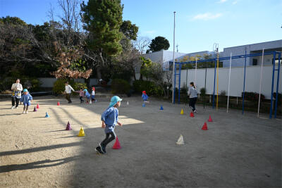 走った後は、みんなで「ラーメン体操」をしました。体操の中で、ラーメンを食べたり、大きなどんぶりを運んだり、とっても楽しい体操です。音楽に合わせて、体を動かすことを楽しみました。