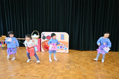 いちご組さんが歌っている♬「ゆきのぺんきやさん」の歌の仕掛け紙芝居でした。降り積もる雪のイメージが広がったかな。
