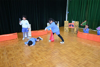 劇遊びの制作も楽しんで作っていましたよ。少しずつ道具や制作もできてきて、遊びも楽しくなってきています。